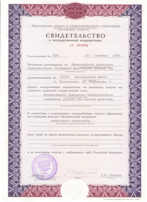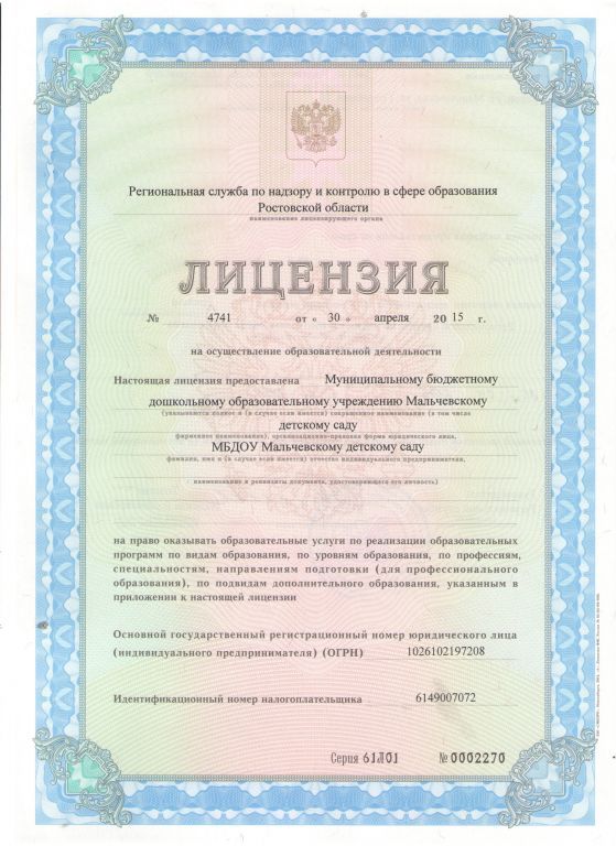 | Полное наименование образовательной организации* | Муниципальное бюджетное дошкольное образовательное учреждение Мальчевский детский сад |