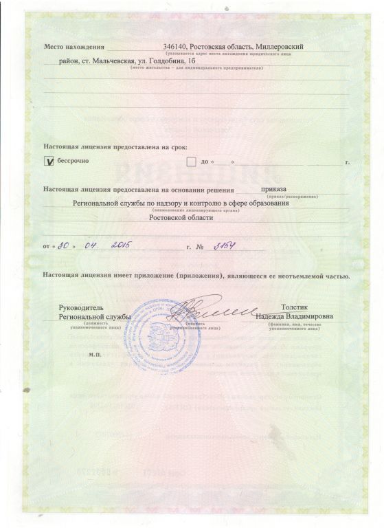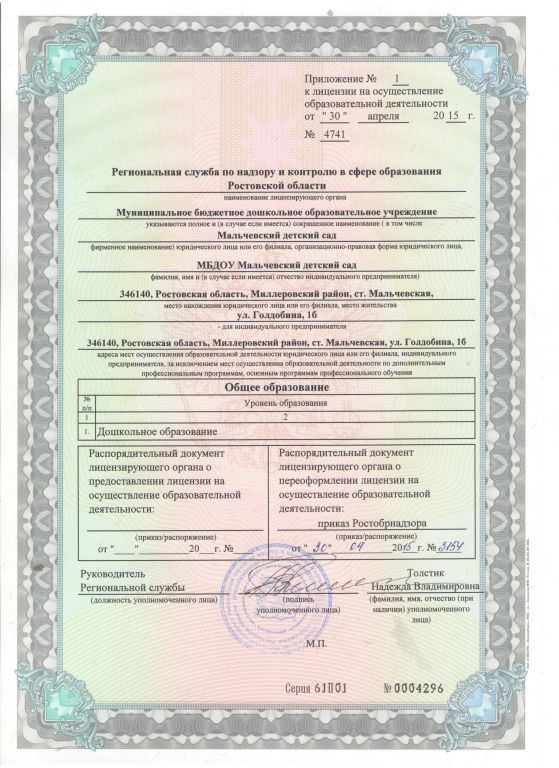| Адрес местонахождения образовательной организации* | 346140 Ростовская область, Миллеровский район, станица Мальчевская, ул. Голдобина, 1-б |